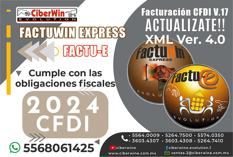 CiberWin Evolution es la marca comercial más apreciada en el mercado software: Administrativo • Contable Fiscal, pues no solo lleva más de 30 años automatizando empresas, sino que tiene orgullo de ser una institución 100% mexicana, y totalmente comprometida con el crecimiento de todos y cada uno de sus clientes y amigos. Todos nuestros módulos, están diseñados con la fina intención, de facilitar las tareas diarias de cada sección del proceso administrativo en todo entre comercial, sin perder de vista que más importante será el recurso humano.